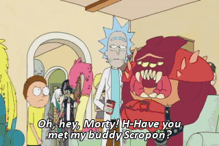 Oh, hey, Morty! H-Have you met my buddy Scropon?