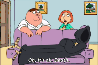 Oh, It's ok, Death. You just worry about feelin' better. Lois, What the hell are you doing? Peter, don't you see? As long as he's here, you can't diE. Go on. That's iT.