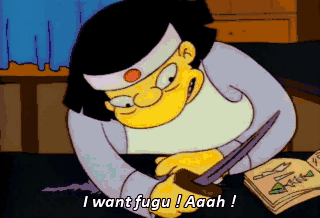 I want fugu ! Aaah ! Hmm, fan-fugu-tastic ! Oh, no !