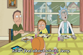 Then the bell rings, and they give you a carton of milk and a piece of paper that says you can go take a dump or something.