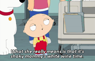 What she really means is that it's shaky mommy's white wine time. Let's go, kids. Come on. We really gotta go, kids. Let's go. Come on.