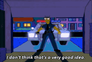 I don't think that's a very good idea. Oh, no! It's Gloria Vanderbilt out for revenge! No. It's Officer Simpson of the police. Herman, your beef is with me.