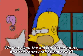 We leave you the kids for three hours, and the county takes 'em away? Oh, bitch, bitch, bitch!