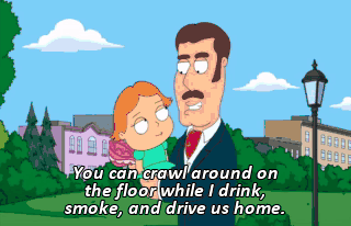 You can crawl around on the floor while I drink, smoke, and drive us home.