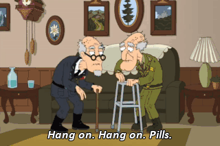 Hang on. Hang on. Pills. Yeah, me, too.