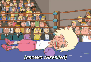 (CROWD CHEERING) - She's getting beat! - No, she's getting mad. You ain't so tough, young man. That all you got, you son ofa bitch? You're going down, young man.