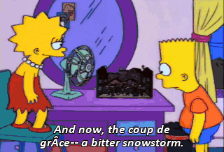 And now, the coup de grÂce-- a bitter snowstorm. Ooh! Uh-oh.