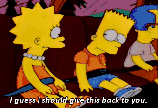 I guess I should give this back to you. I showed it to your friends again before we left. - Bart! - Look inside. Oh. Thanks, Bart. I signed it too.