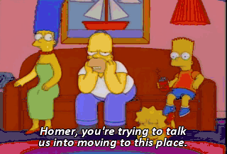 Homer, you're trying to talk us into moving to this place. Oh, yeah, that's right. Let's watch this. Look at this place. Somebody ought to build a town that works. Somebody did.