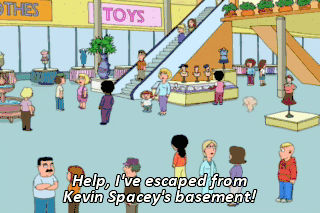 Help, I've escaped from Kevin Spacey's basement! Help me! I am so outrageous. Give me the cash. - Cold in here? - Nope, just really small.