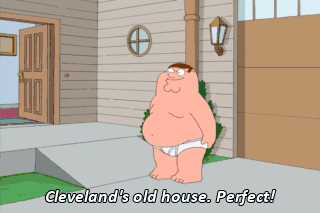 Cleveland's old house. Perfect! Damn, no toilet paper. - Hey, Joe, can I borrow this? - JOE: Sure.
