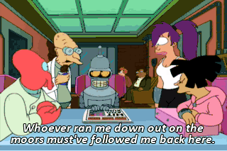 Whoever ran me down out on the moors must've followed me back here. Bender, mon, no one's trying to run you over. Stop being a big hallucinating baby. Yeah? Well, could a big hallucinating baby do this? I'm scared.