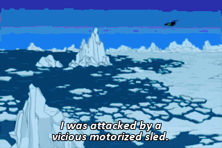 I was attacked by a vicious motorized sled. The natives called it... the Abominable Snowmobile.