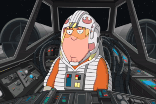 (PETER MIMICS LASER SHOOTING) You've reached Han Solo. Please leave a message after the blorp.