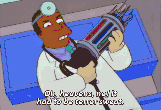 Oh, heavens, no! It had to be terror sweat. Oh, yeah. This is good. So, uh, ain't you guys gonna ask me about my hat? - Ah! - Ah! Hey, Carl, what's with the hat?