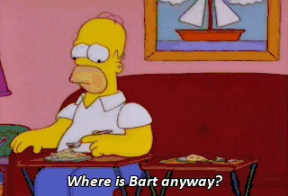 Where is Bart anyway? His dinner is getting all cold and eaten.