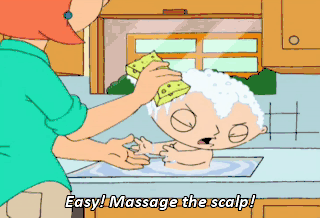 Easy! Massage the scalp! You're washing a baby's hair, not scrubbing vomit off your Christmas dress, you holiday drunk!
