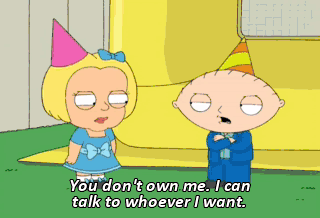 You don't own me. I can talk to whoever I want. I don't see a ring on my finger. I, Stewie, take you, Olivia, to be my lawfully wedded wife. What's that, Rupert? Oh, kiss the bride. Yes. AUDIENCE: Whoo!