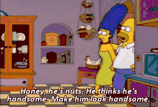 Honey, he's nuts. He thinks he's handsome. Make him look handsome.