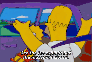 See the Isis exhibit! But the museum's closed. Hmm. Closed, eh? So getting in would be a pretty big risk. What do you say, honey? Feelin' stupid? I know I am!