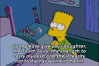 God, please give your daughter, the Tooth Fairy, the strength to carry my cash and the integrity not to dip her wand in the till. What the...