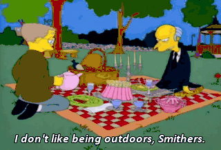 I don't like being outdoors, Smithers. For one thing, there are too many fat children.