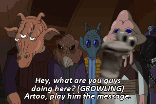 Hey, what are you guys doing here? (GROWLING) Artoo, play him the message.