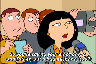 So you're saying you're not only a bad father, but a bad husband, too? Do you Have the moral authority to lead? Yes. No. And, screw it. I resign.