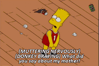 (MUTTERING NERVOUSLY) (DONKEY BRAYING) What did you say about my mother! (YELLING)