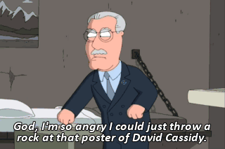 God, I'm so angry I could just throw a rock at that poster of David Cassidy. (METALLIC CLATTERING)