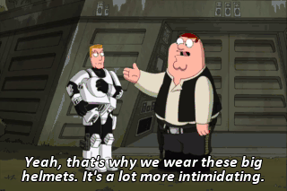 Yeah, that's why we wear these big helmets. It's a lot more intimidating. I'll be honest with you. I don't like people who are different.