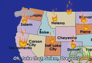 Oh, take that, Salem, Oregon! Wait a minute. This game is educational! That'll teach you to teach me!