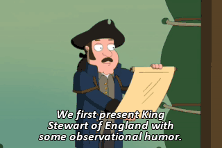 We first present King Stewart of England with some observational humor. Hi there, everybody. You know, my Aunt Frieda was a real card. She always had the most wonderful spirit,