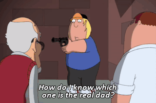 How do I know which one is the real dad? I... We never switched. We don't even look the same! All right, when's my birthday? Aw, crap. February 8th.