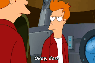 Okay, dork. Listen, I'm going to hit the urinal,