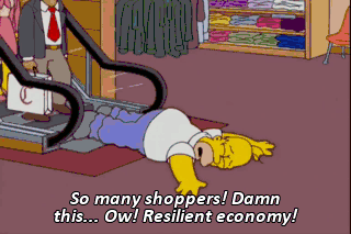 So many shoppers! Damn this... Ow! Resilient economy!