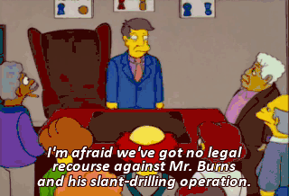 I'm afraid we've got no legal recourse against Mr. Burns and his slant-drilling operation.