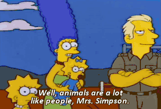 Well, animals are a lot like people, Mrs. Simpson. Some of them act badly because they've had a hard life, Stampy! or have been mistreated. But, like people, some of them are just jerks.