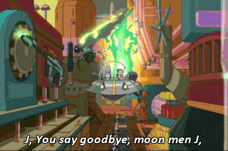 J, You say goodbye, moon men J, J, Goodbye, moon men J, All right. Let's proceed. Damn.