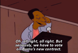 Oh, all right, all right. But seriously, we have to vote on Burns's new contract.