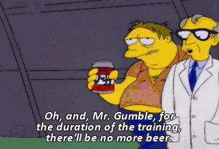 Oh, and, Mr. Gumble, for the duration of the training, there'll be no more beer.