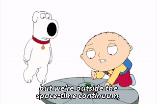 but we're outside the space-time continuum, so there are no laws of physics. Watch. How the hell did you do that? No laws of physics, Brian. We create our own physics. See, watch this. (SCATTING MELODY)