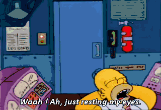 Waah ! Ah, just resting my eyes. Ah, well done. A rested employee is a vigilant employee. Monitoring station unmanned.