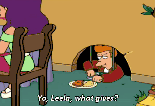 Yo, Leela, what gives? Pig says your slop tastes like crap. Yeah, like crap. Come on, Leela. You deserve better than this guy. Dump him already. I'm trying.