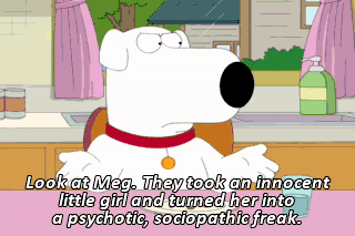 Look at Meg. They took an innocent little girl and turned her into a psychotic, sociopathic freak.