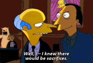Well, I-- I knew there would be sacrifices. Oh ! Great toast, Marge !