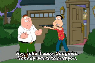 Hey, take it easy, Quagmire. Nobody wants to hurt you. Right, Joe?