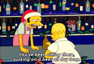 You've been sitting there, sucking on a beer all day long. So ? So, it's Christmas. Thanks, Moe. Drinks all around !
