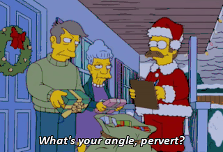 What's your angle, pervert? Oh-ho. My angle is "givin' in this world, livin' in the next!"