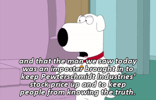 and that the man we saw today was an imposter brought in to keep Pewterschmidt Industries' stock price up and to keep people from knowing the truth.